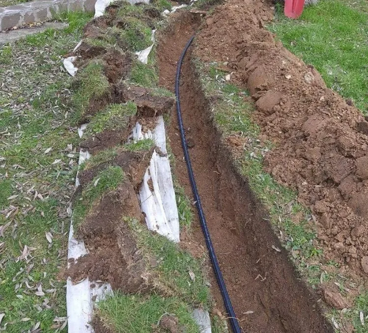 - -для начала нужно выкопать траншею, причем она должна идти от самого источника энергии к дому. Стоит учитывать тот факт, что глубина траншеи должна составлять около 80 сантиметров;